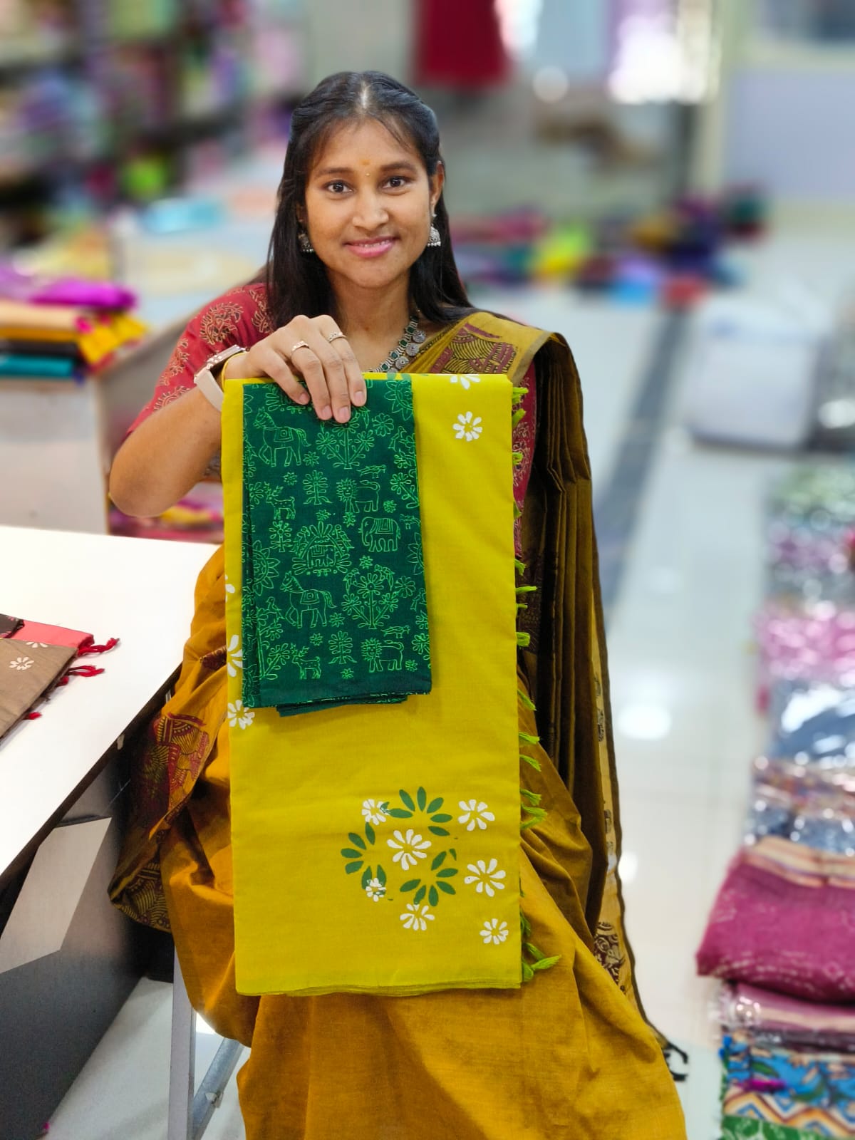 📌Saree with running blouse length- 6 mtrs