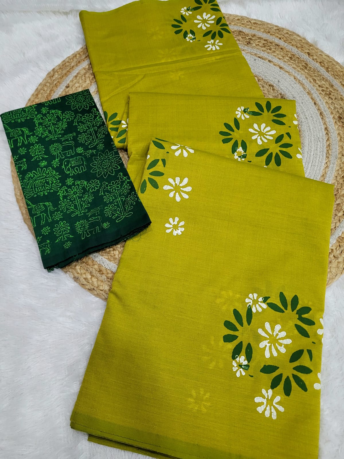 📌Pallu-same color handblock print