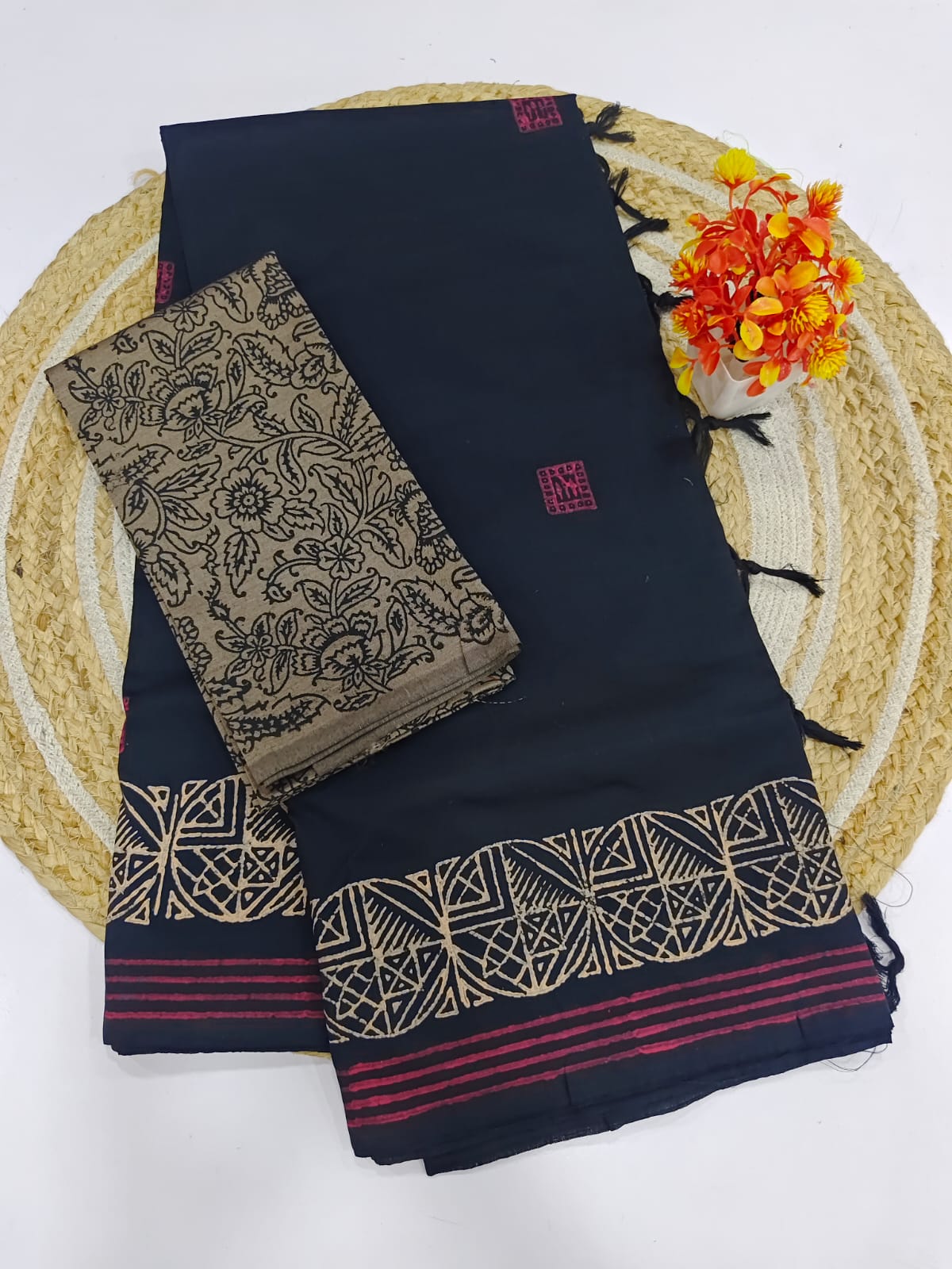 📌Saree with running blouse length- 6 mtrs