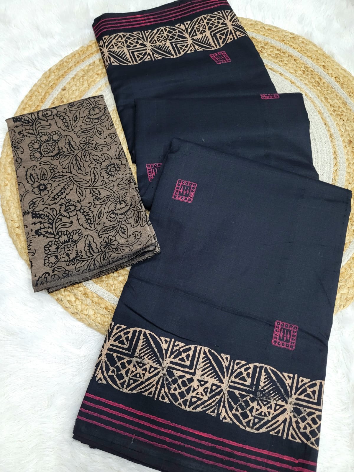 📌Pallu-same color handblock print