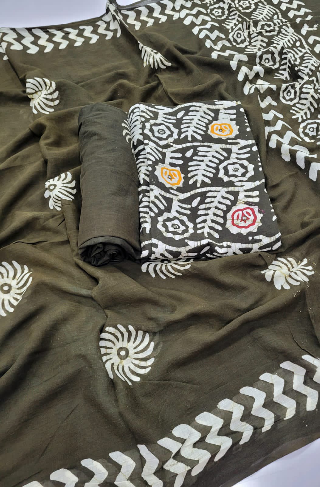 Branded Batik Printed Cotton Salwar Materials (Unstitched 3pcs)