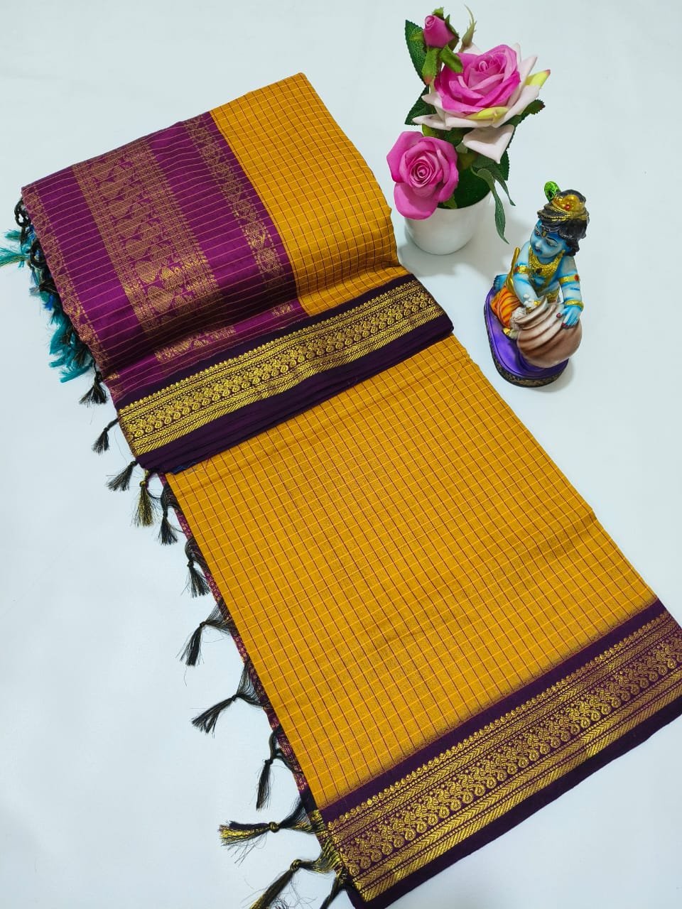 Checked Kalyani cotton saree/Lata Gadwal Paithani