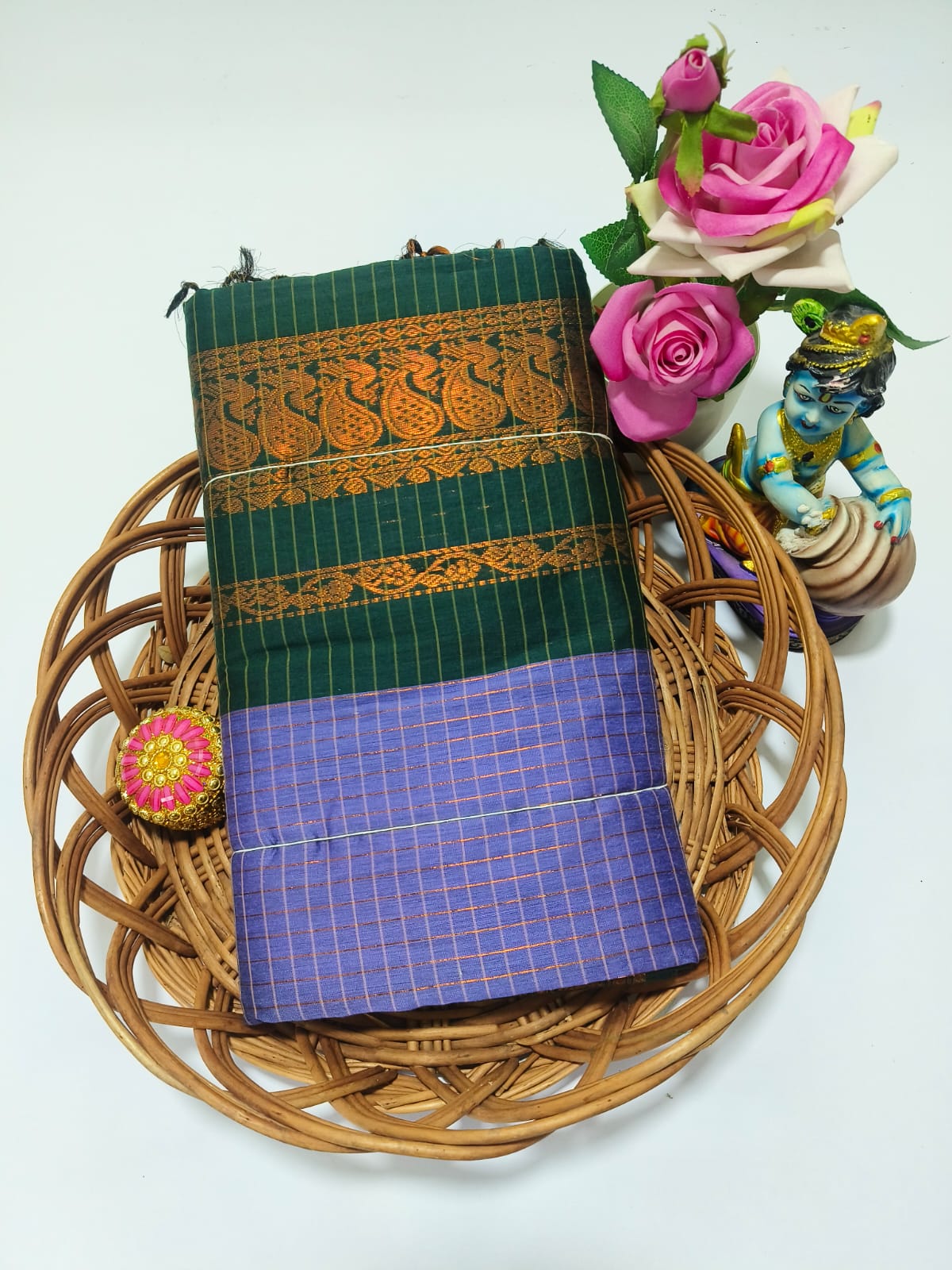 Checked Kalyani cotton saree/Lata Gadwal Paithani