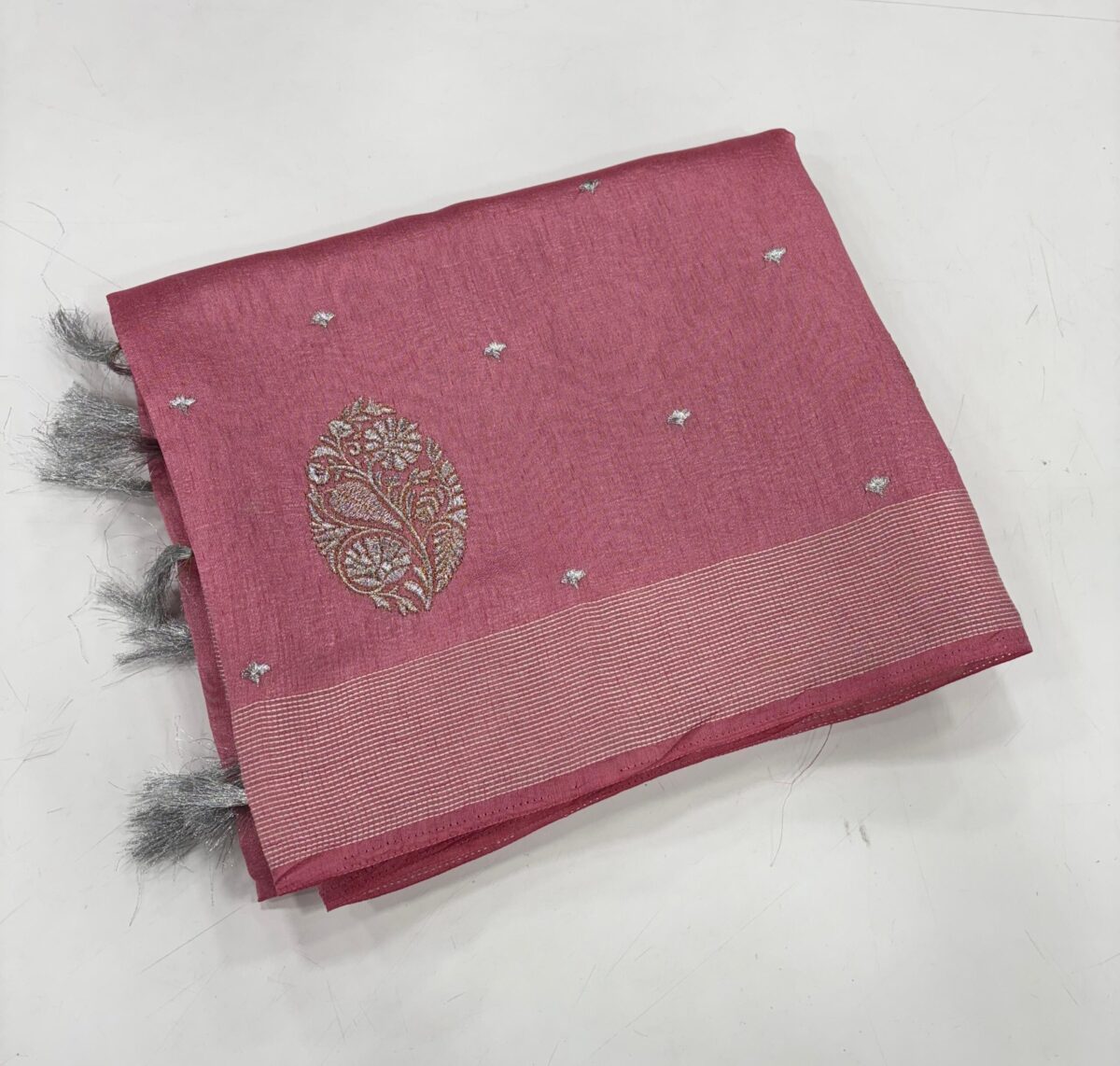 With Self Pallu & Blouse. Comes with Designer Silver Tassels