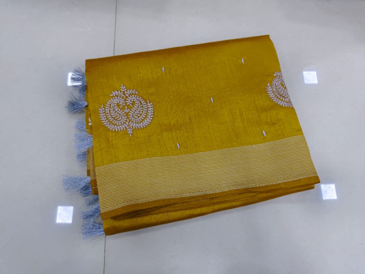 With Self Pallu & Blouse. Comes with Designer Silver Tassels