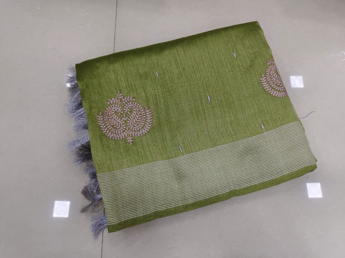 With Self Pallu & Blouse. Comes with Designer Silver Tassels