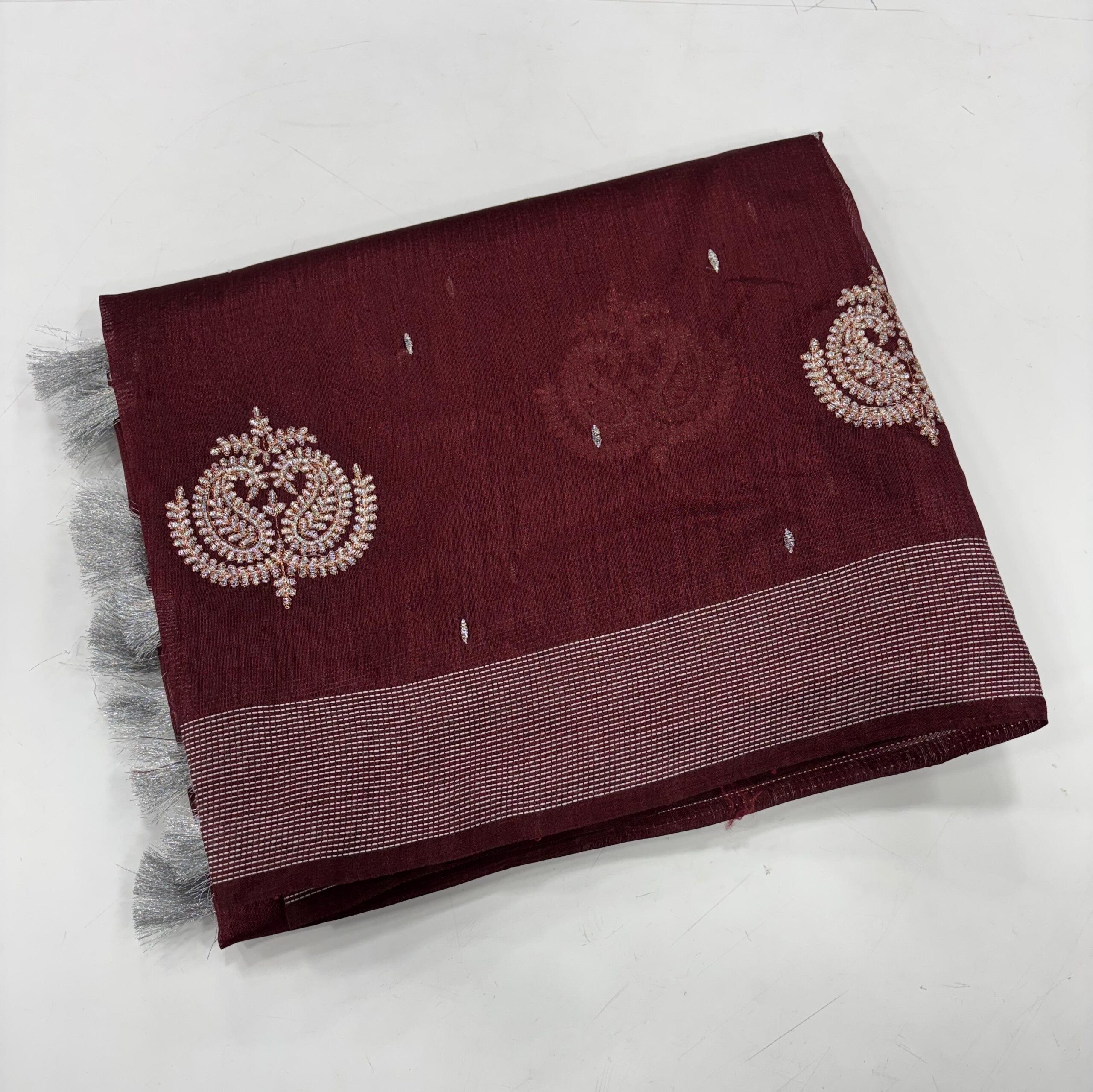 With Self Pallu & Blouse. Comes with Designer Silver Tassels