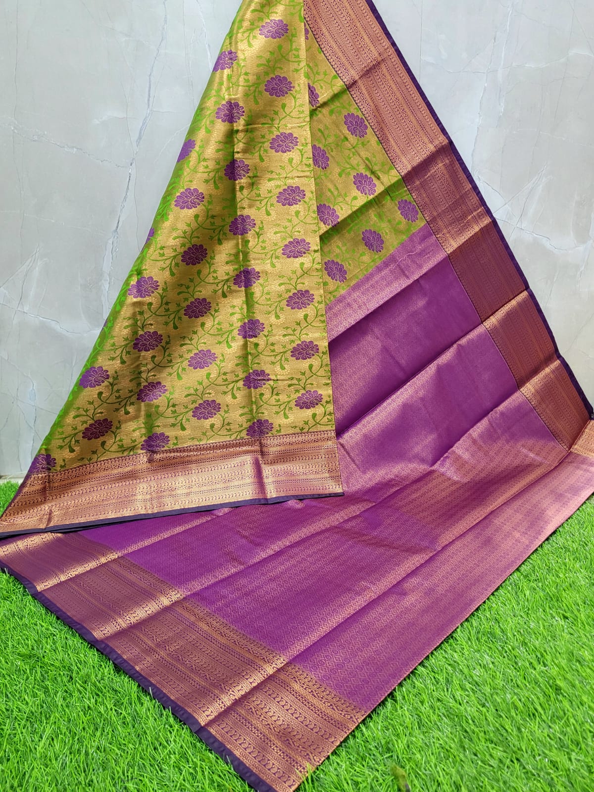 ✨Contrast Rich Copper Zari Weaving pallu & Brocade Blouse✨