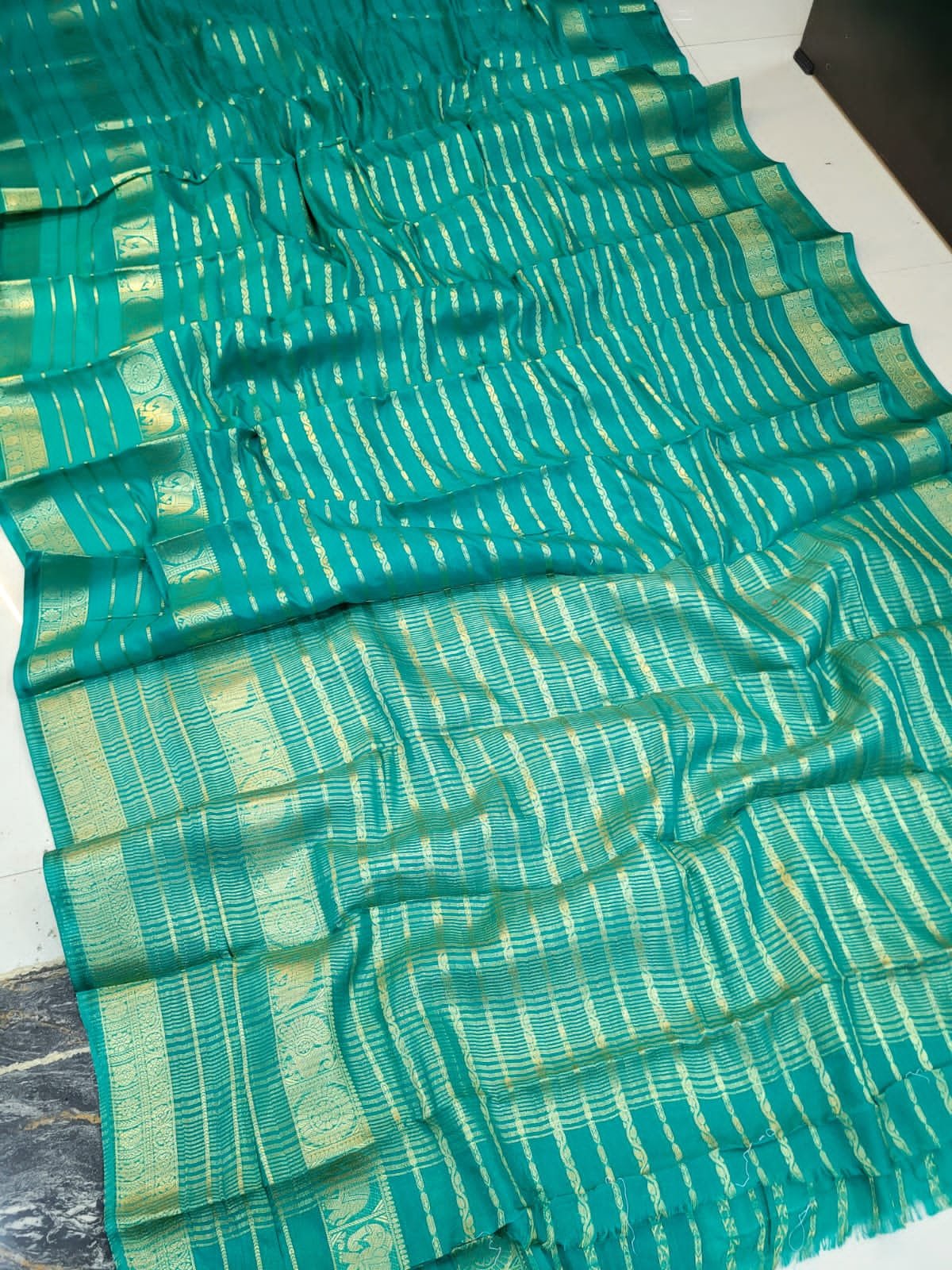 Type of silk saree known for its distinctive texture and drape with exclusive zari lines, shares characteristics with this style of saree.