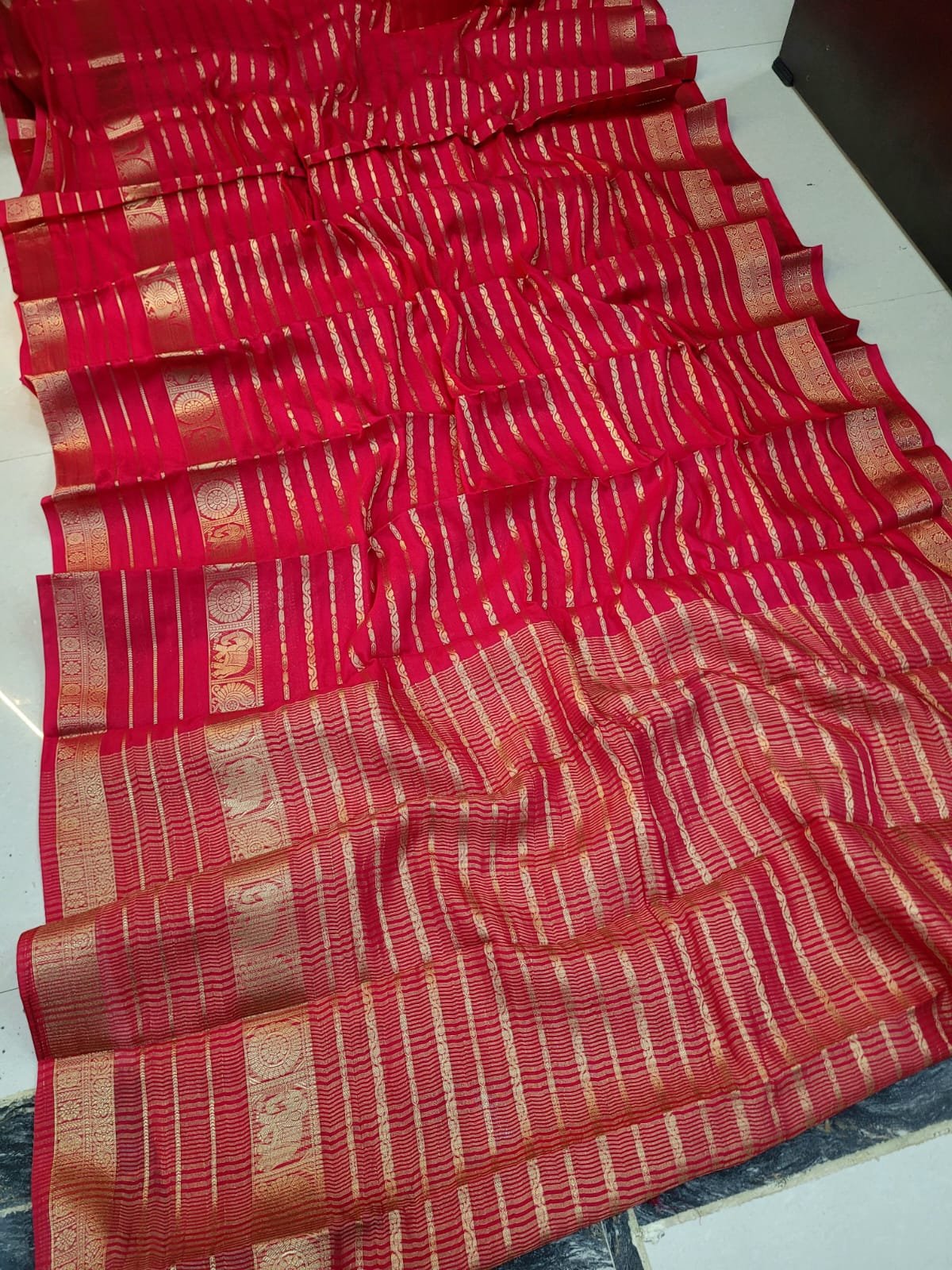 Type of silk saree known for its distinctive texture and drape with exclusive zari lines, shares characteristics with this style of saree.
