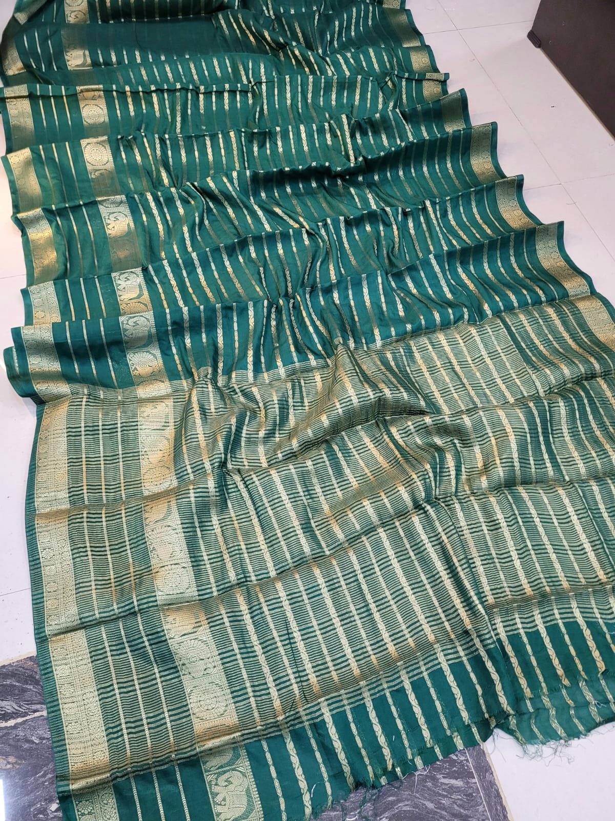 Type of silk saree known for its distinctive texture and drape with exclusive zari lines, shares characteristics with this style of saree.