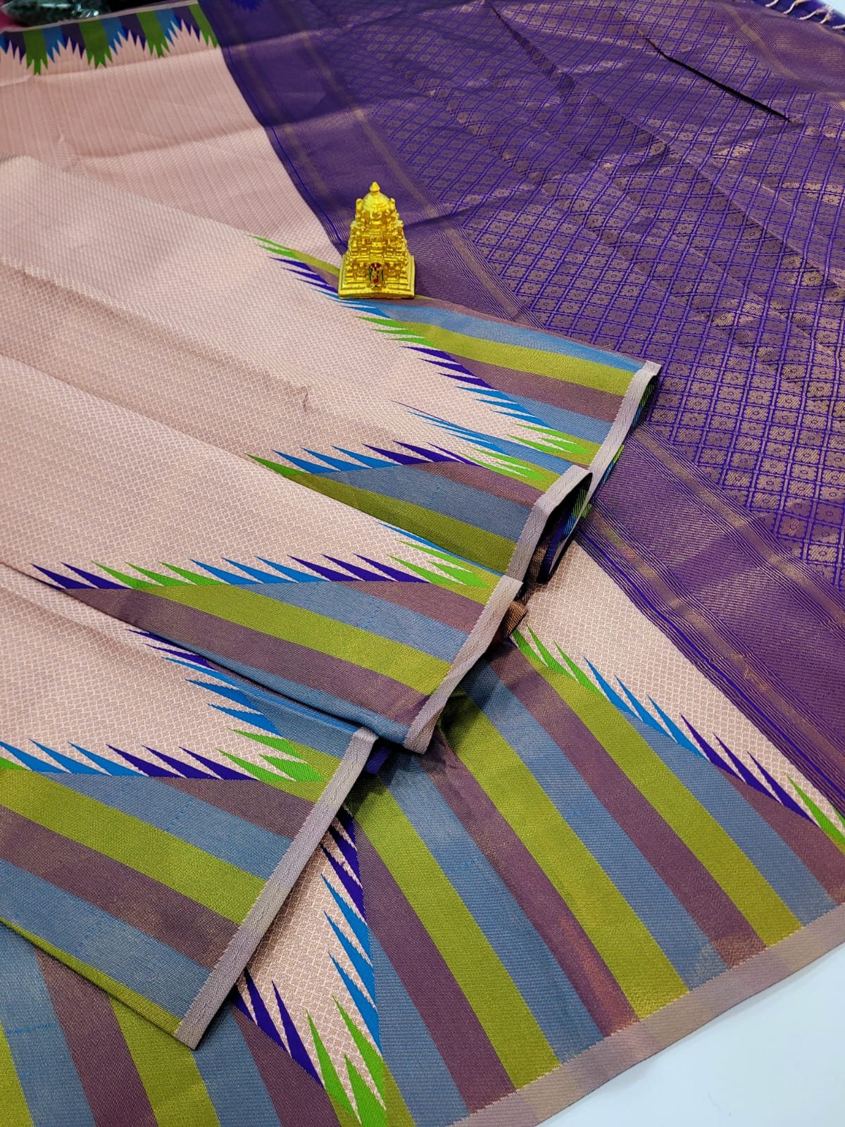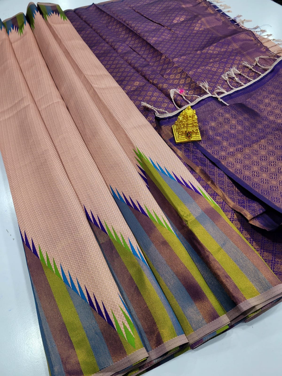 Fabric: Kanchi Semi Silk Saree enchants with delicate temple weaving borders gracefully adorning the saree.