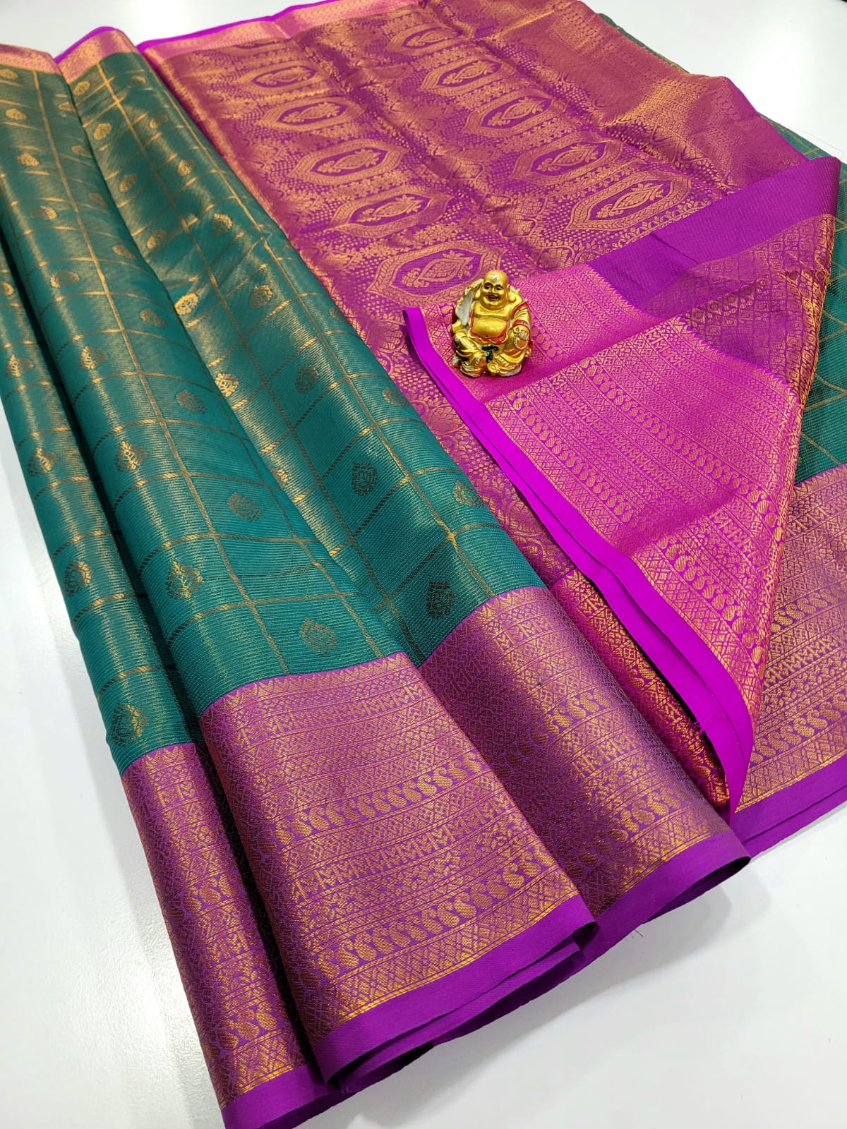 Allover body with Vairaoosi Pattern in a Premium copper zari Weaving