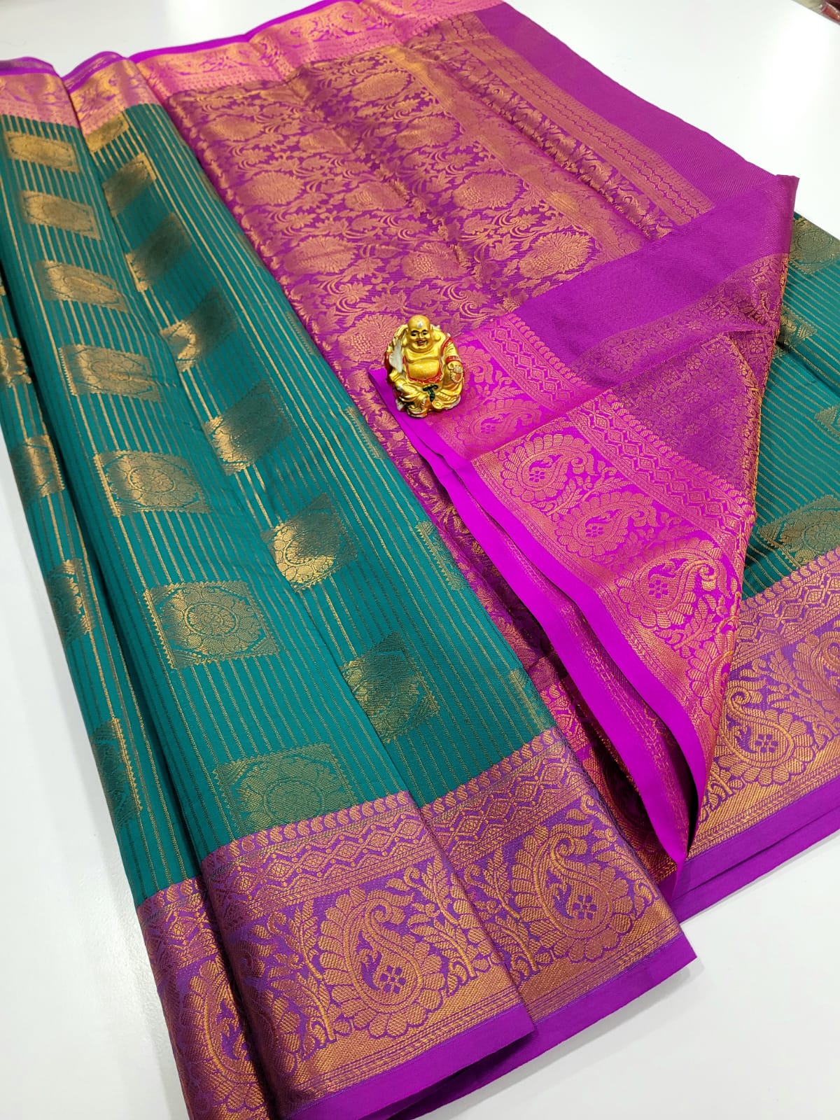 Allover body with Vairaoosi Pattern in a Premium copper zari Weaving