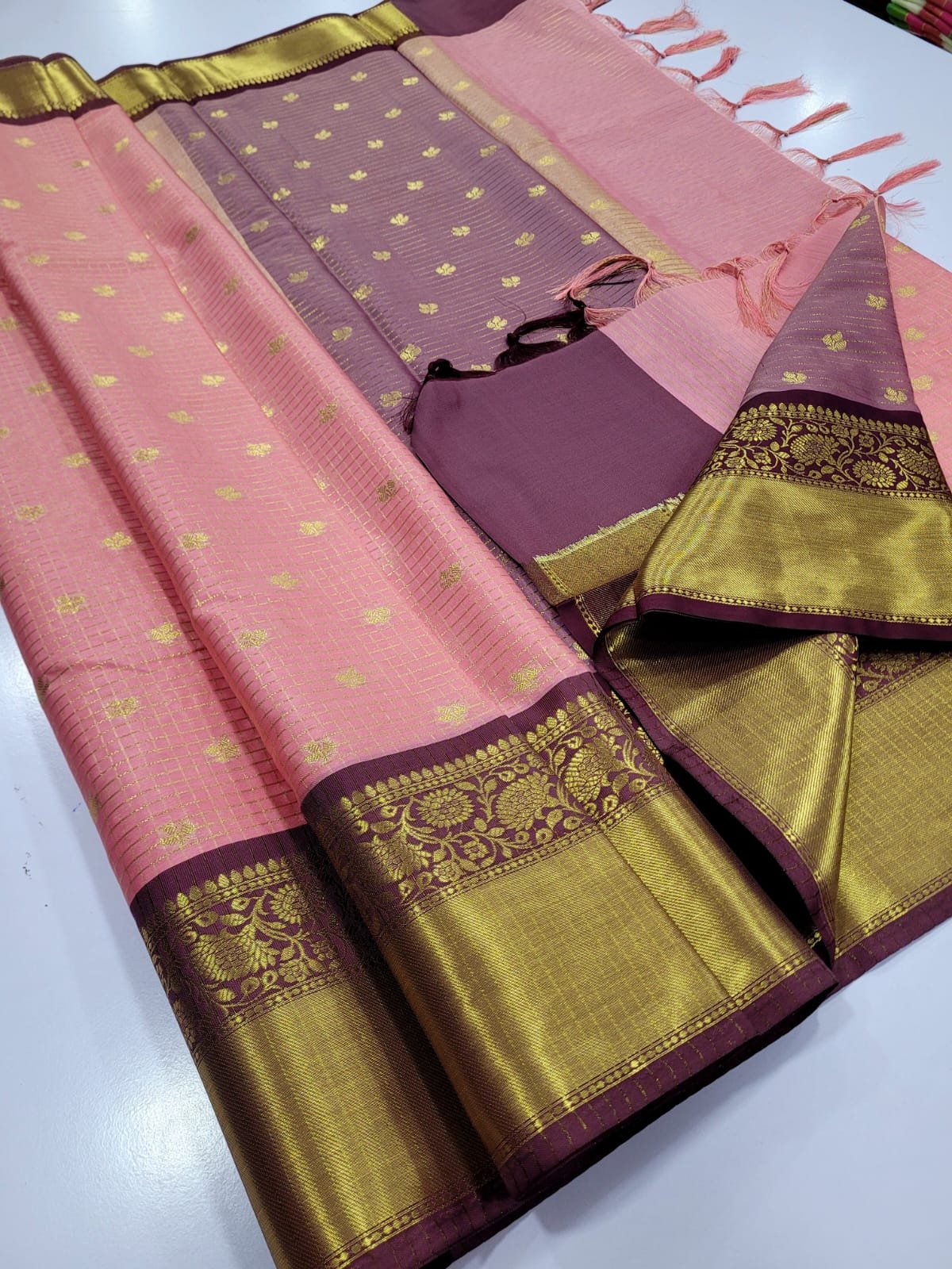 Banaras Silk Fabric with Copper Zari Weaving allover body