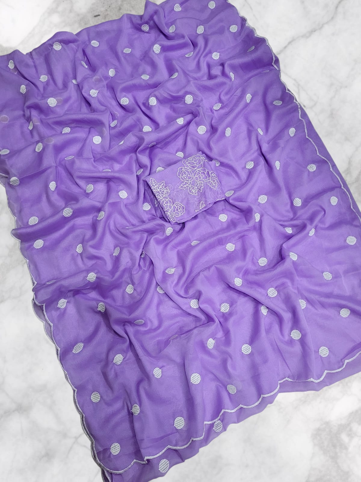 Fabric: Soft Georgette with polka Dots Embroidery Pattern