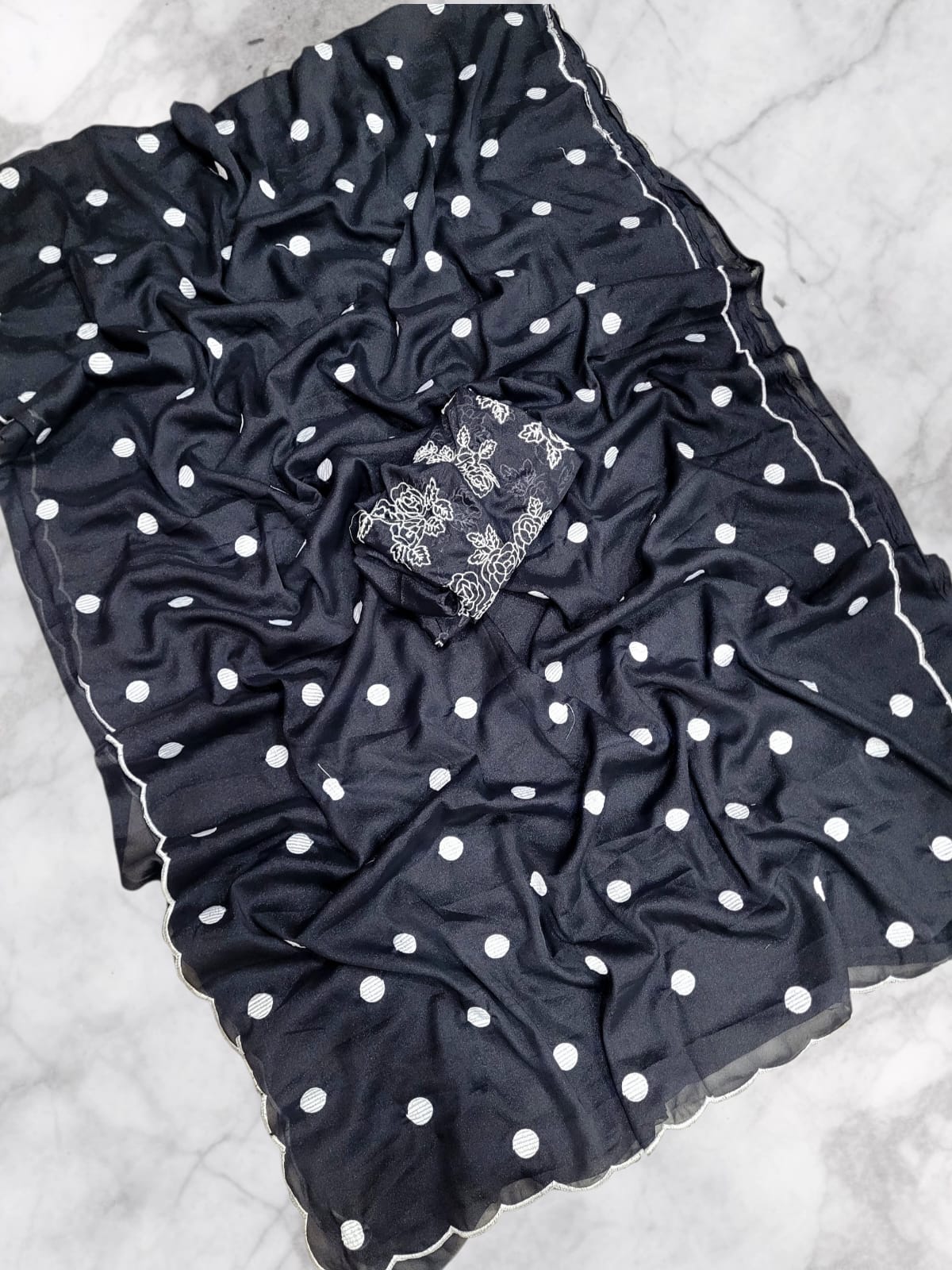 Fabric: Soft Georgette with polka Dots Embroidery Pattern
