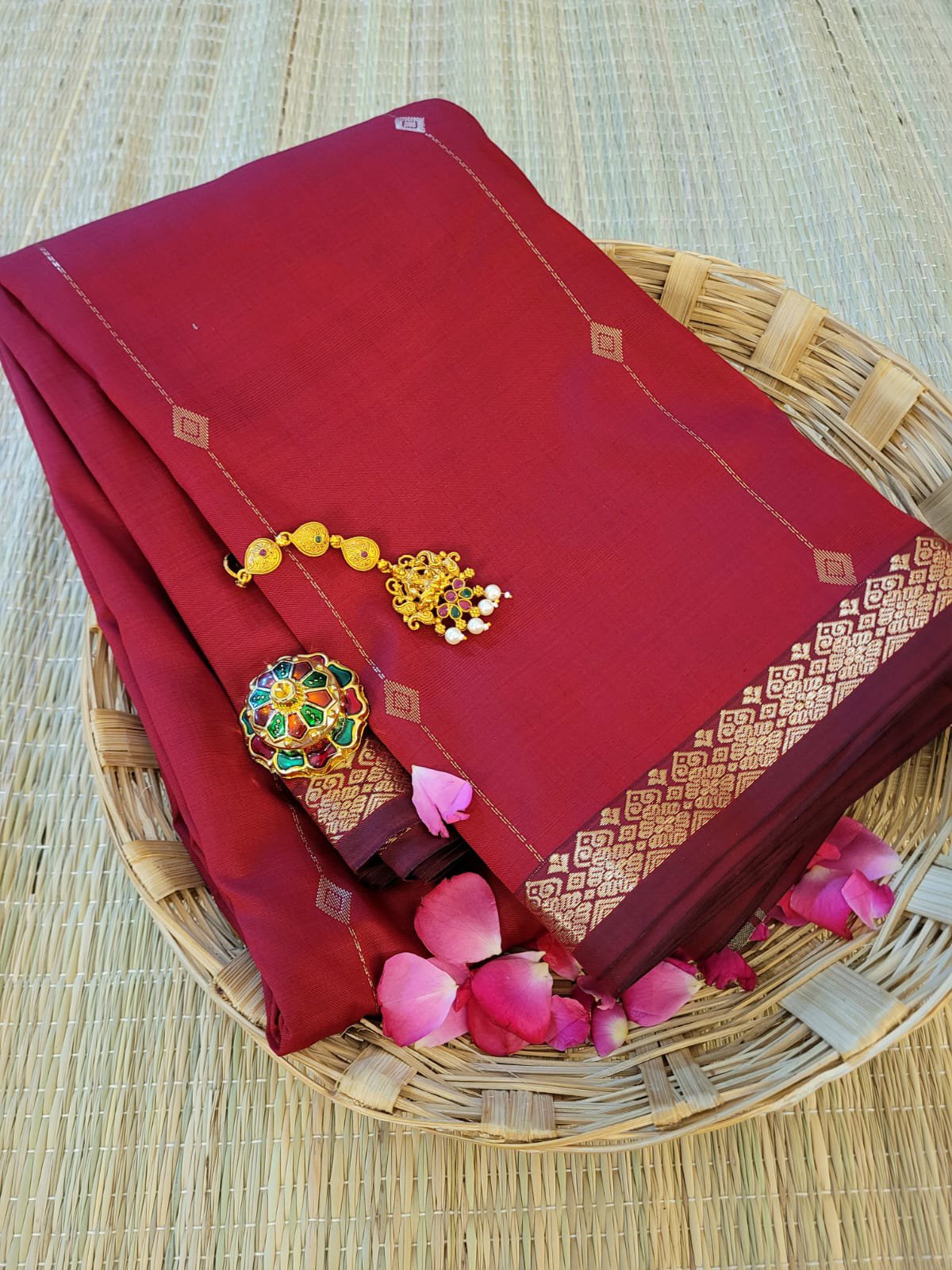 With Zari rich pallu & blouse