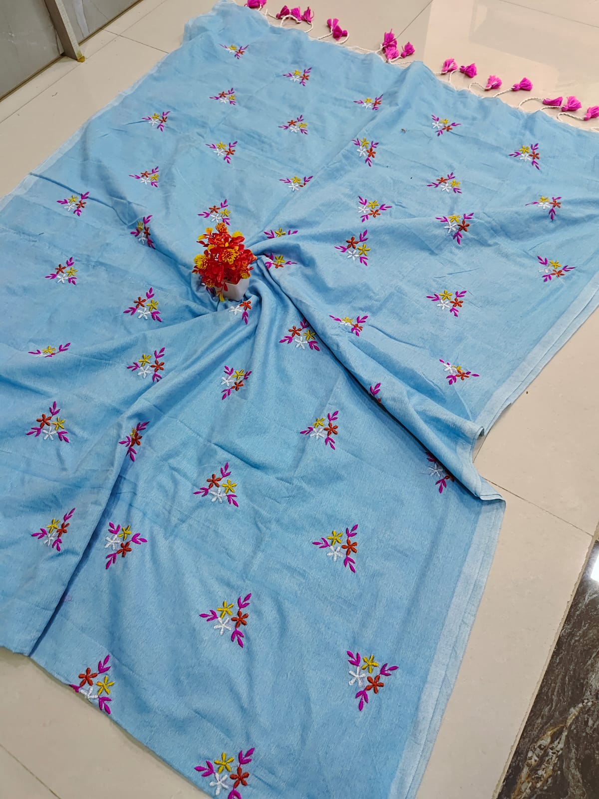 With pallu along with designer tassels & Blouse
