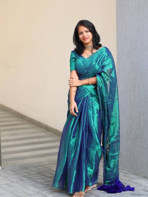 With Contrast pallu along with designer tassels & Contrast Blouse