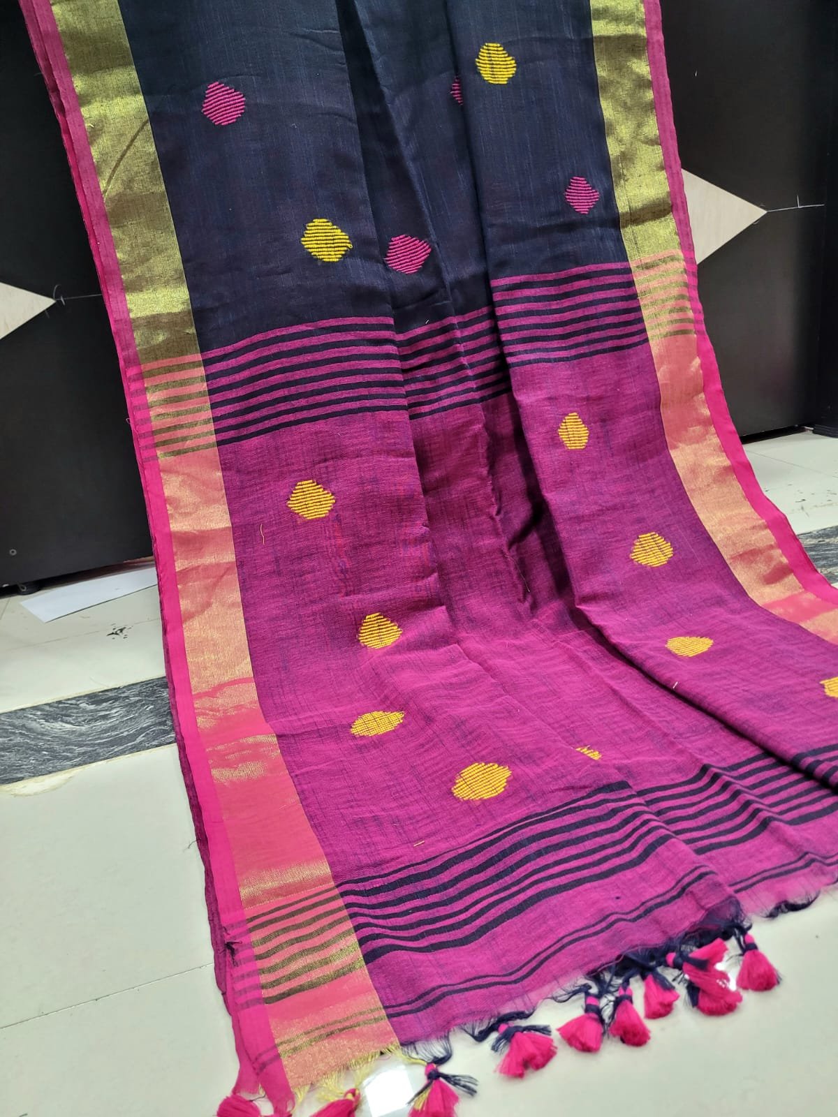 With Contrast pallu along with designer tassels & Contrast Blouse