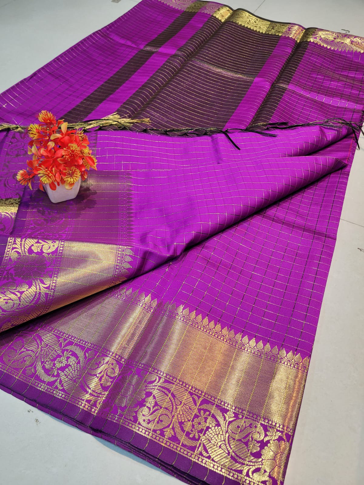 With Checked & Border with zari weaving,