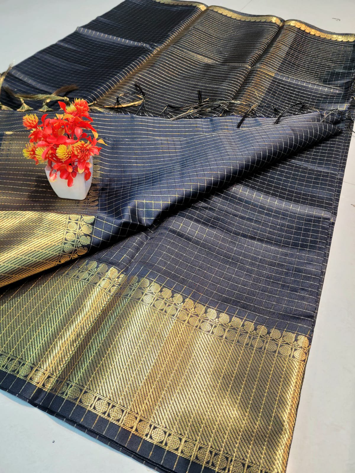With Checked & Border with zari weaving,