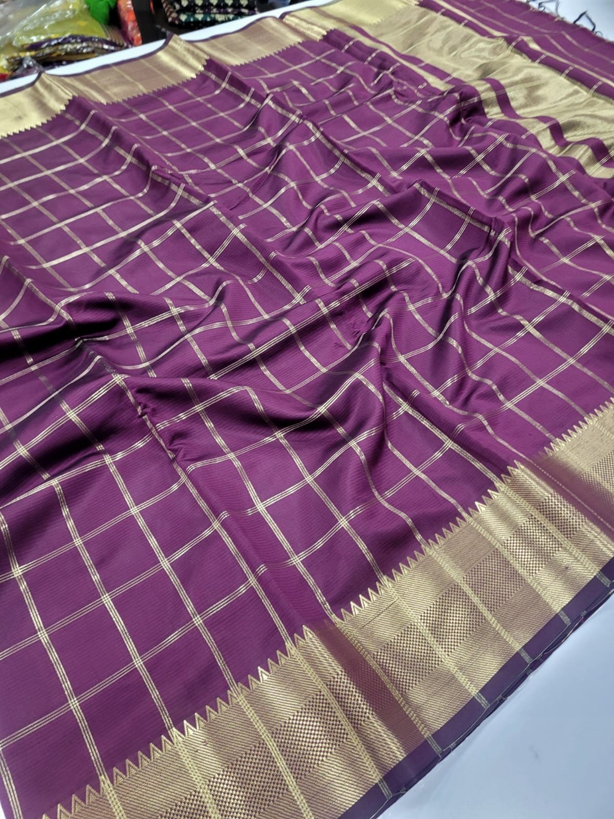 With Checked & Border with zari weaving,
