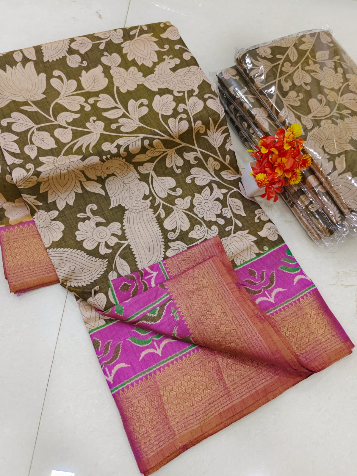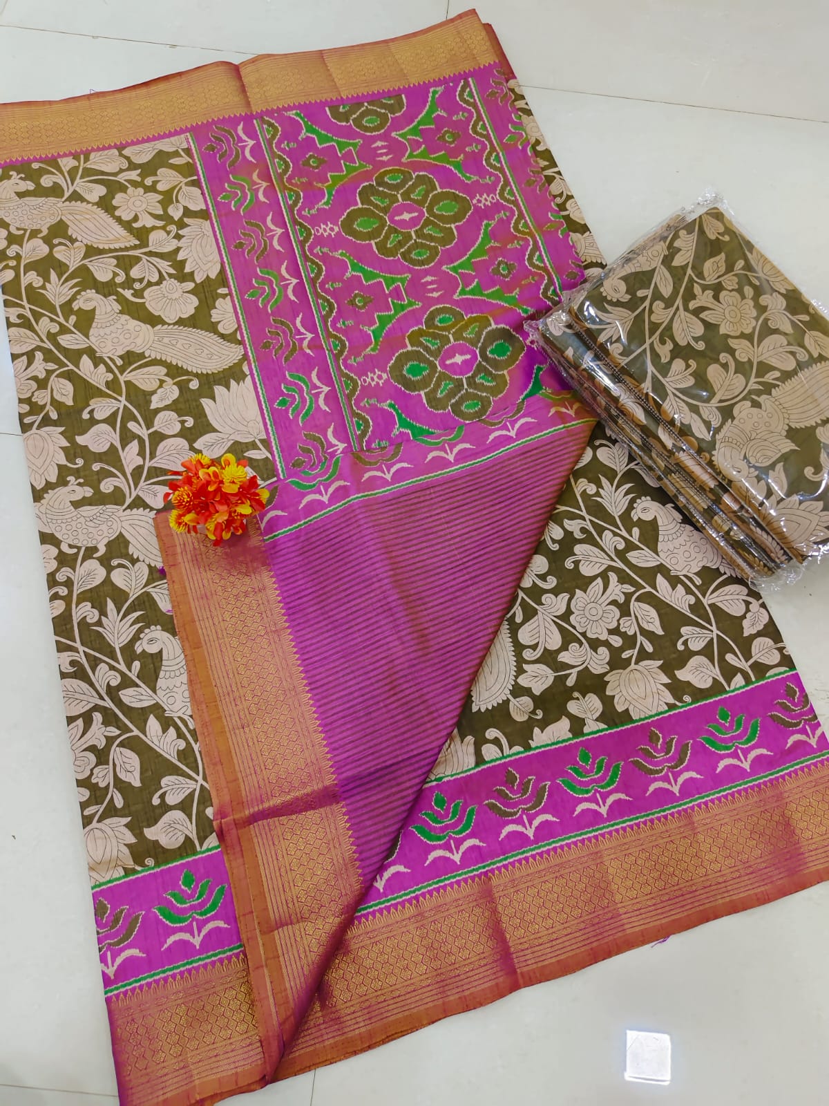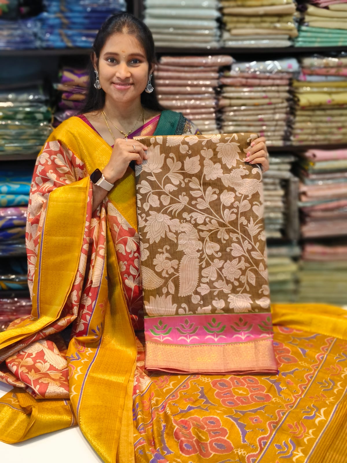 Elite & Rich Look Patola & Kalamkari Pattern Dual Tone Premium Dola Softsilk SAREES