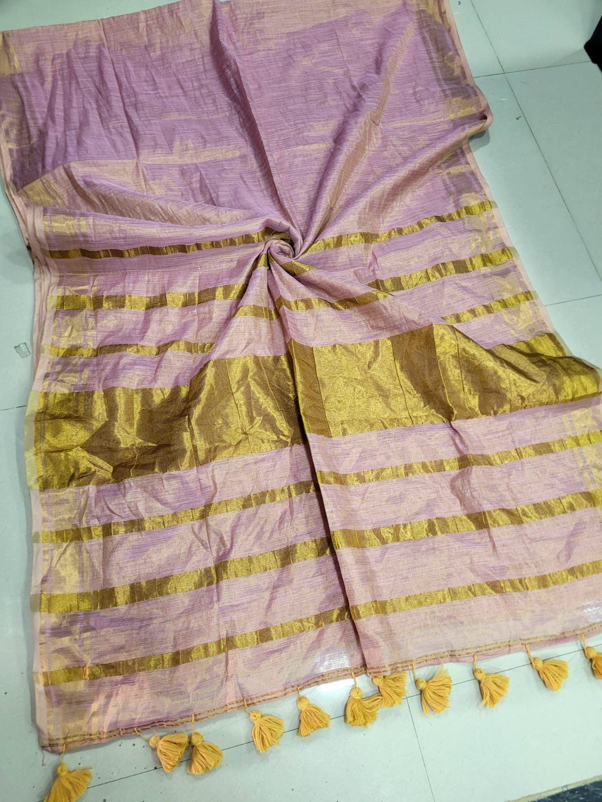 Kerala gold tissue finish saree with Rich Zari pallu & running blouse material