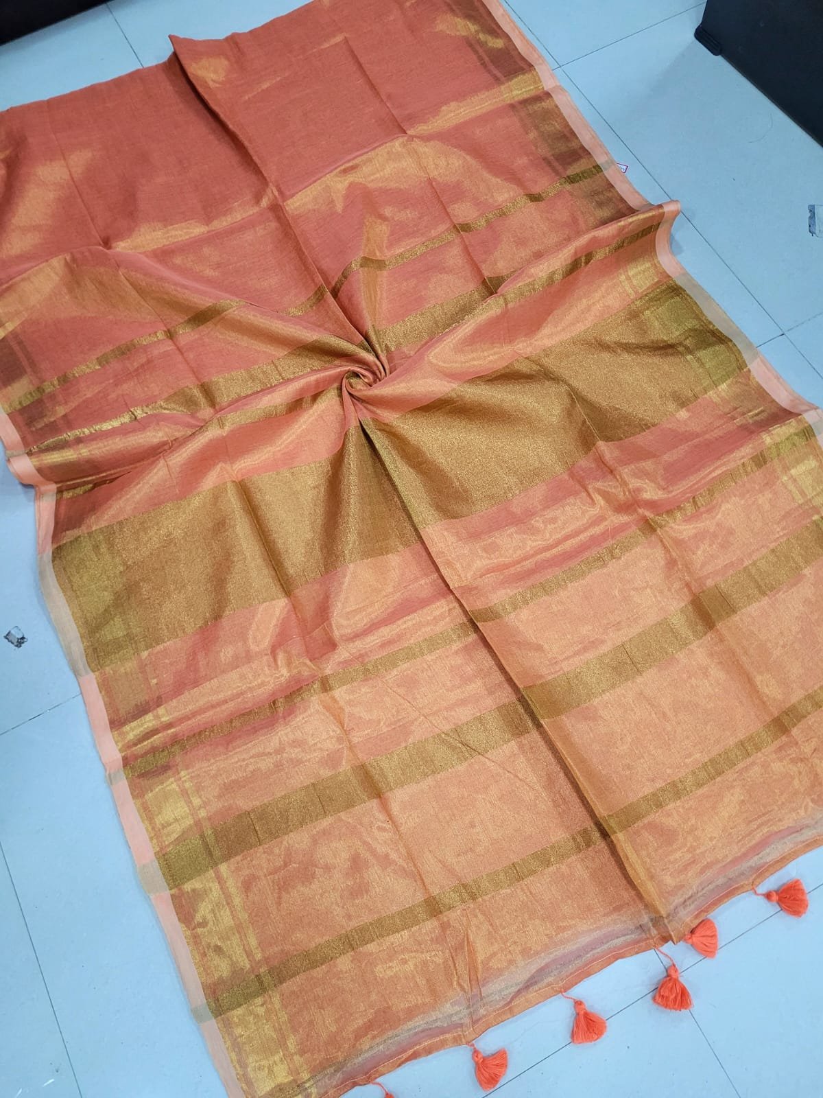 Kerala gold tissue finish saree with Rich Zari pallu & running blouse material