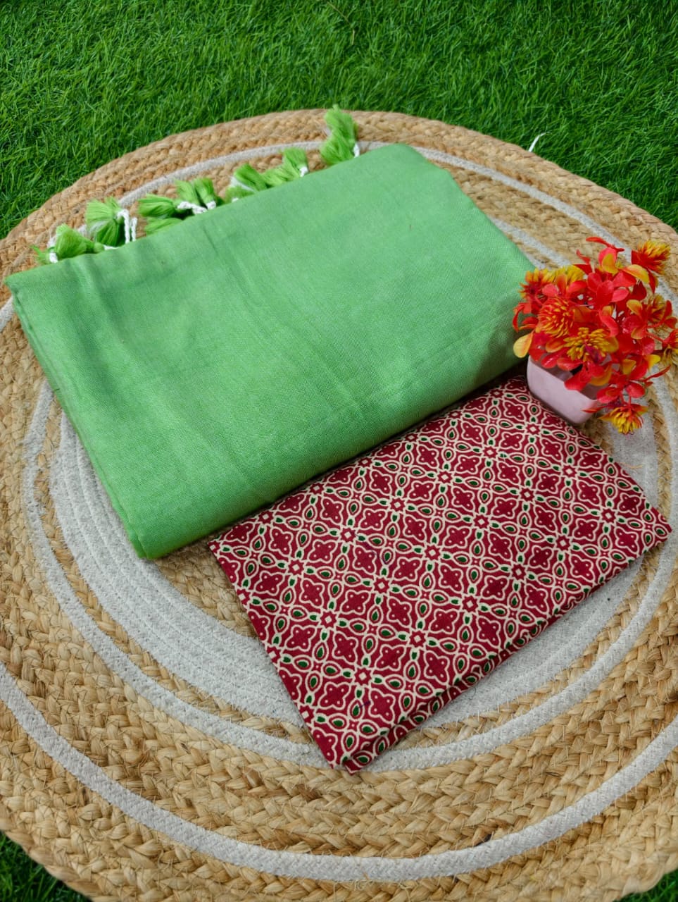 Khadi Cotton Saree+Blouse Combo