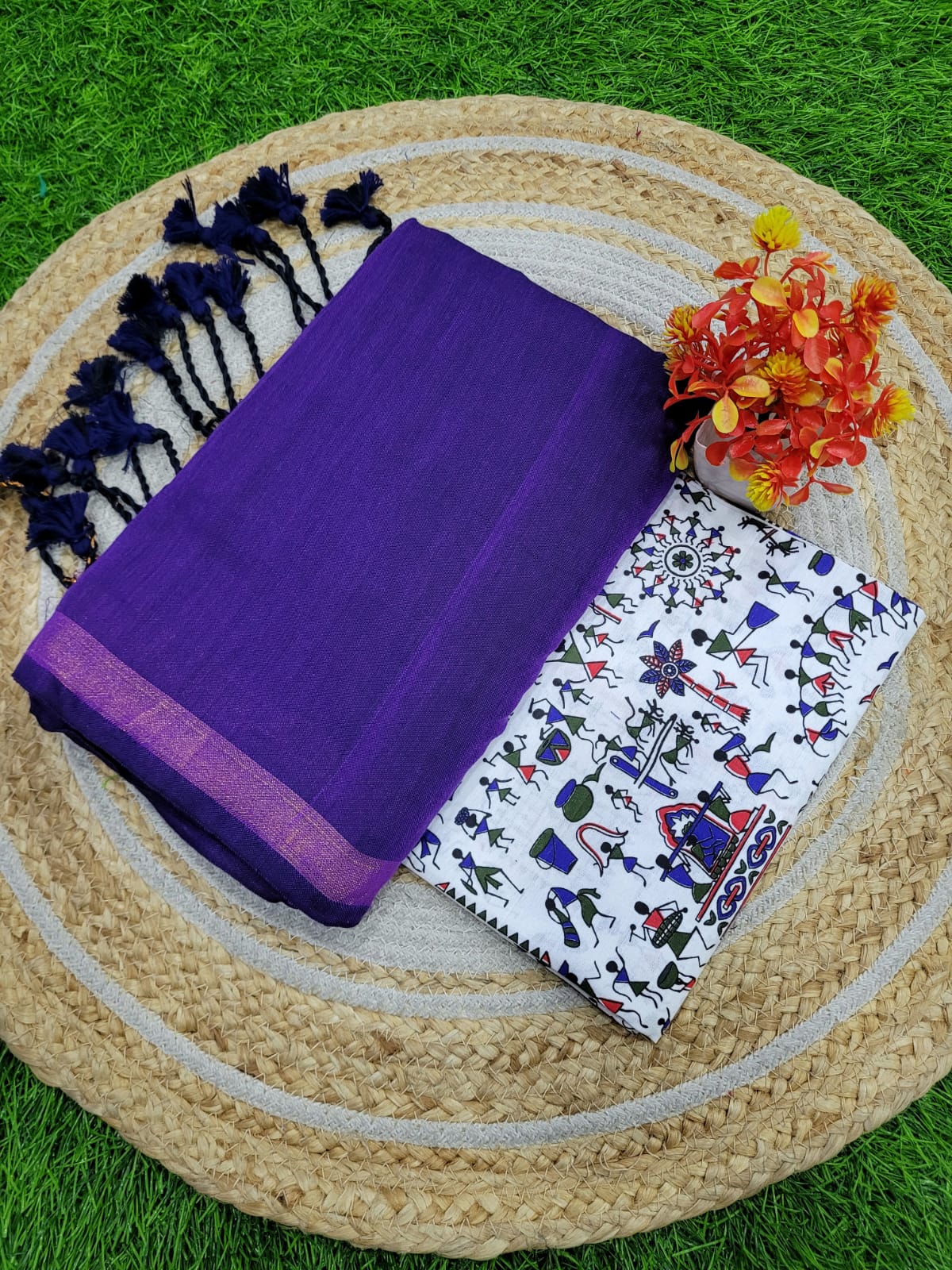 Traditional Khadi cotton Saree+Blouse Combo