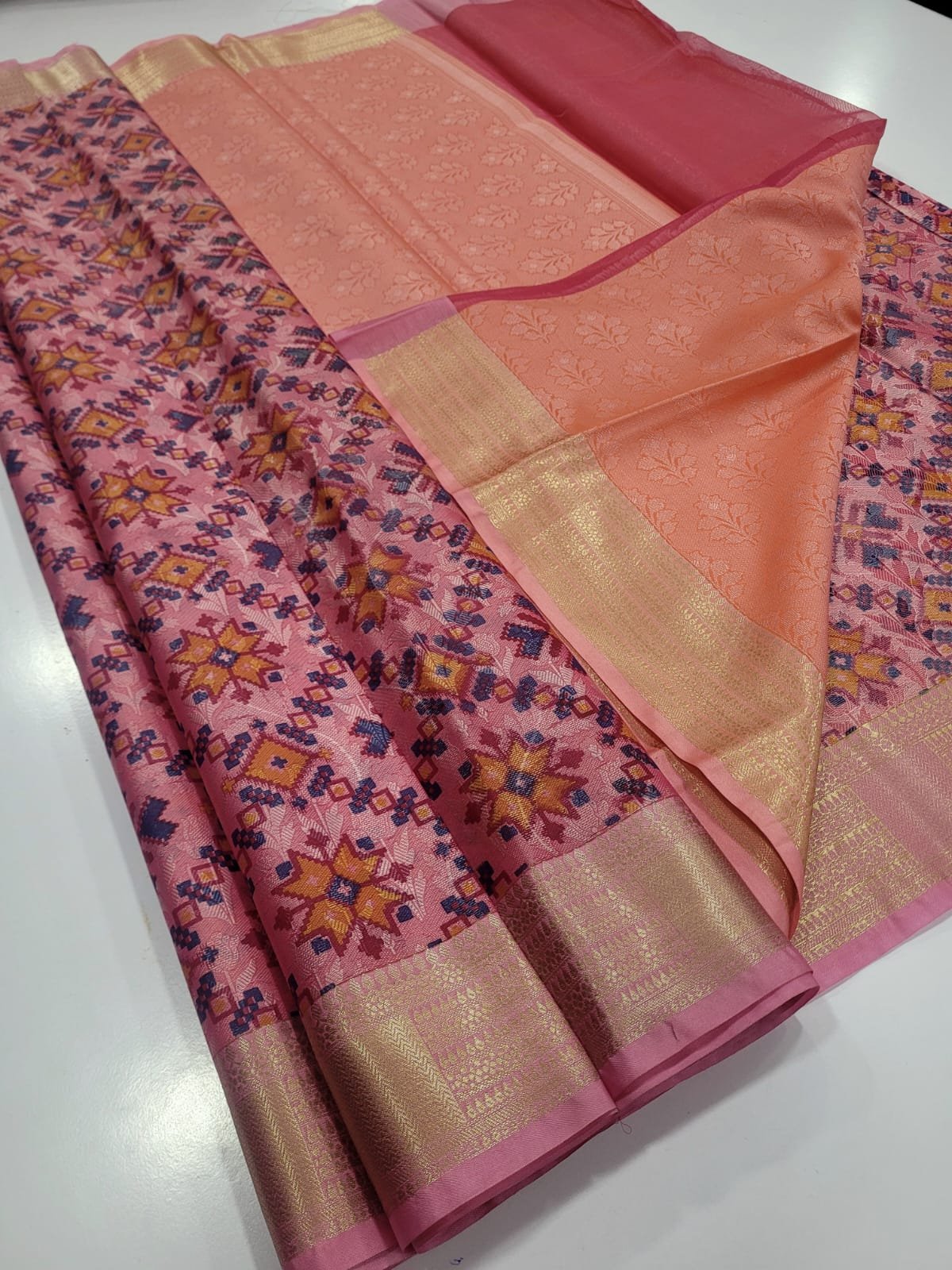 🥳 Premium Banarasi Koramuslin Silk saree, Rich Border Design with contrast rich pallu & Brocade blouse