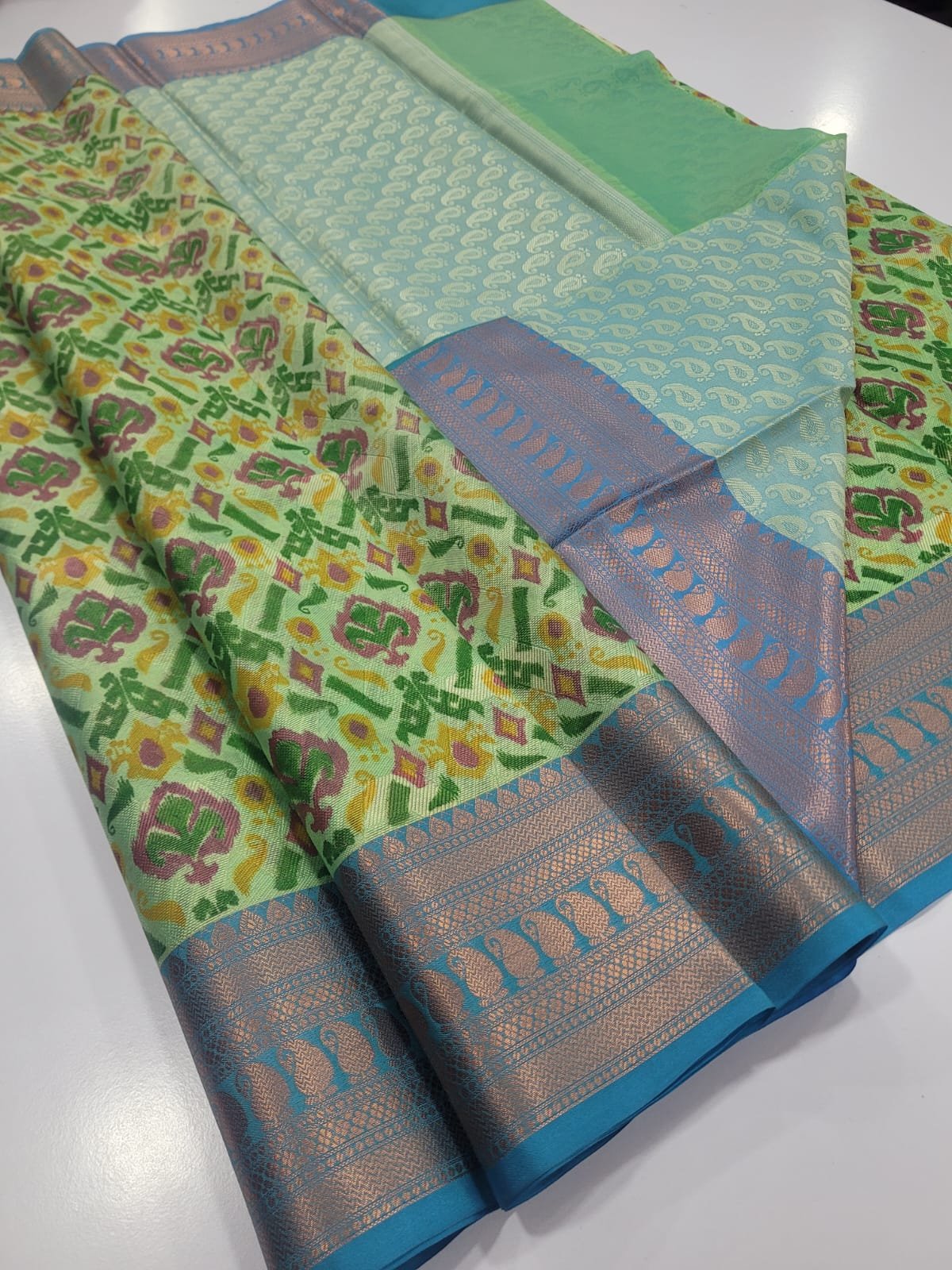 🥳 Premium Banarasi Koramuslin Silk saree, Rich Border Design with contrast rich pallu & Brocade blouse