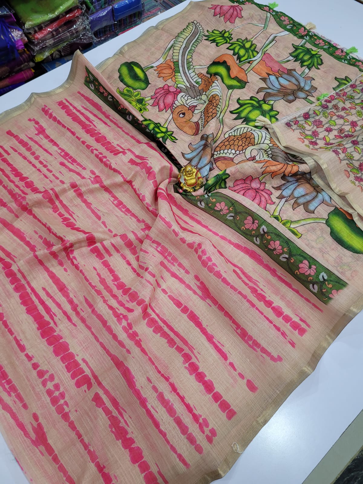 Onam SPL Kerala Sarees with mayuri Printed - Golden Tissue