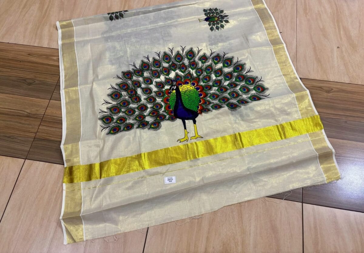 Onam SPL Kerala Sarees with mayuri Printed – Golden Tissue