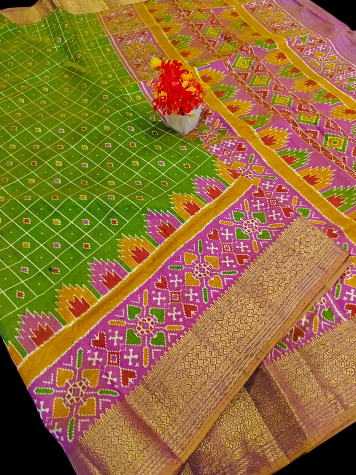 Elite & Rich Look Patola & Zig Zag Pattern Dual Tone Premium Dola Softsilk SAREES
