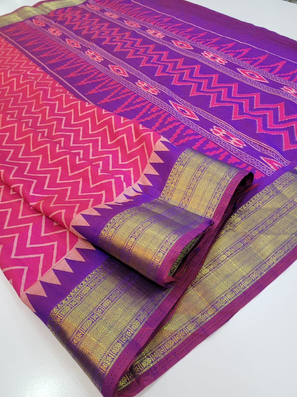 Elite & Rich Look Patola & Zig Zag Pattern Dual Tone Premium Dola Softsilk SAREES