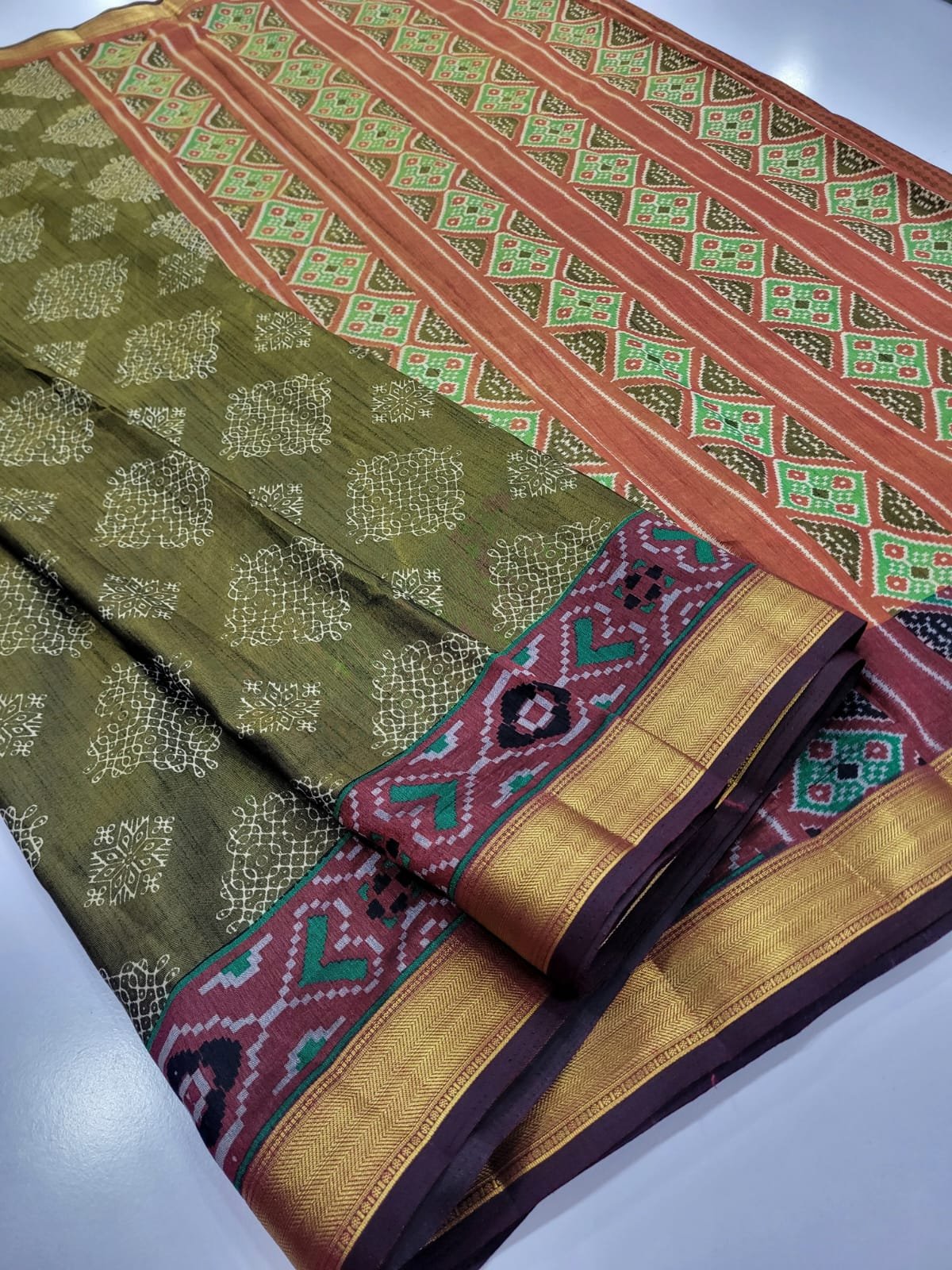 Elite & Rich Look Patola & Zig Zag Pattern Dual Tone Premium Dola Softsilk SAREES