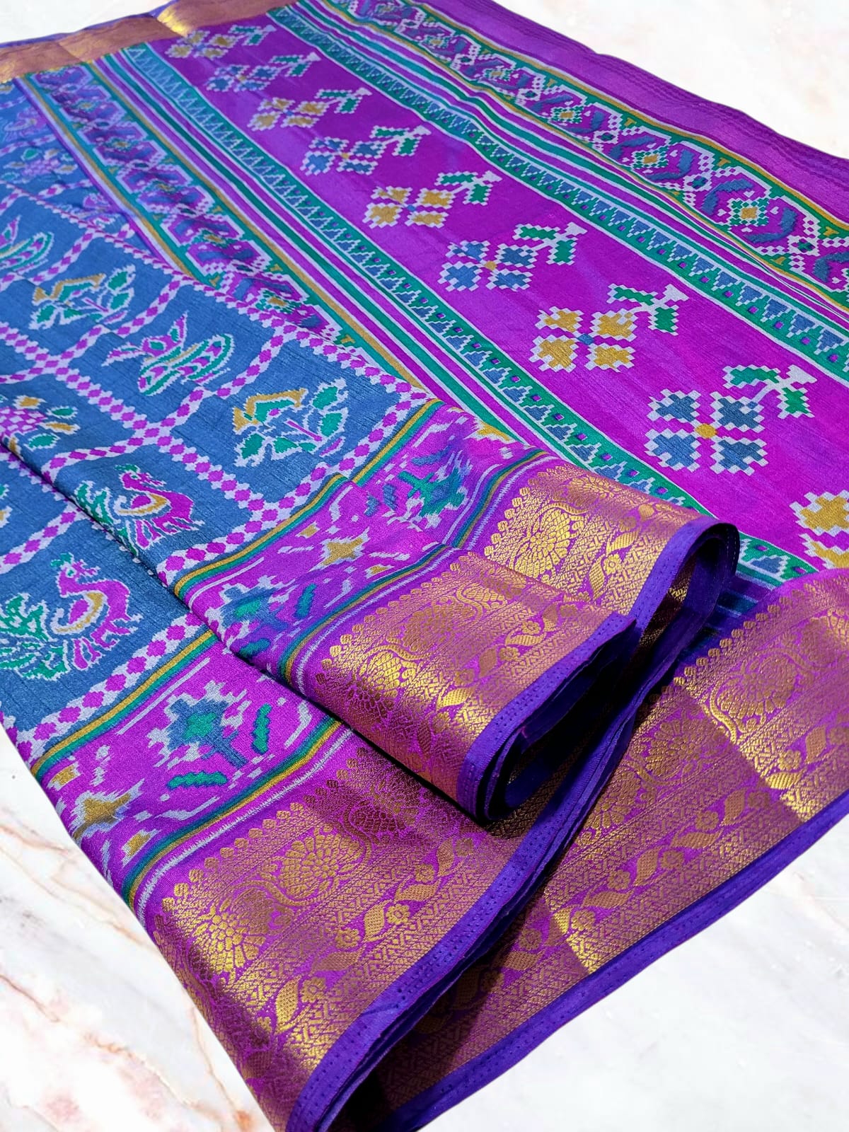 *Stunning Dual Tone Body Shade with Pretty patola Pattern all over Body