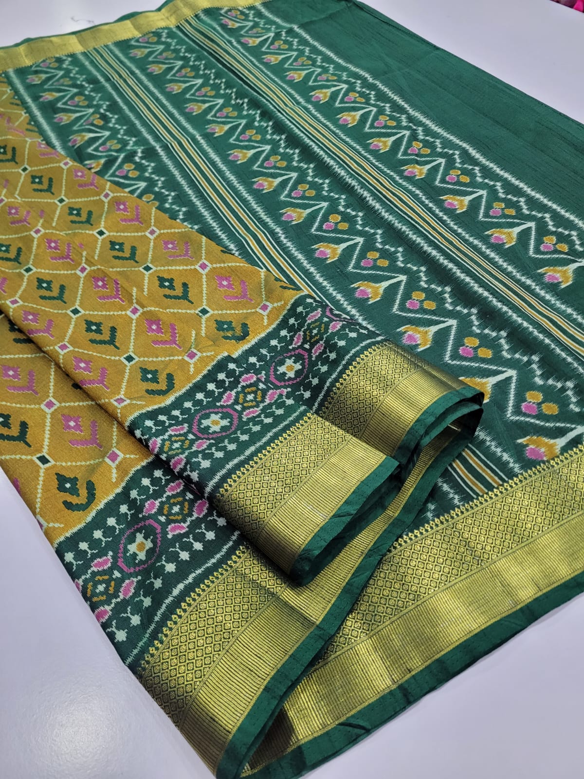 Elite & Rich Look Patola & Zig Zag Pattern Dual Tone Premium Dola Softsilk SAREES