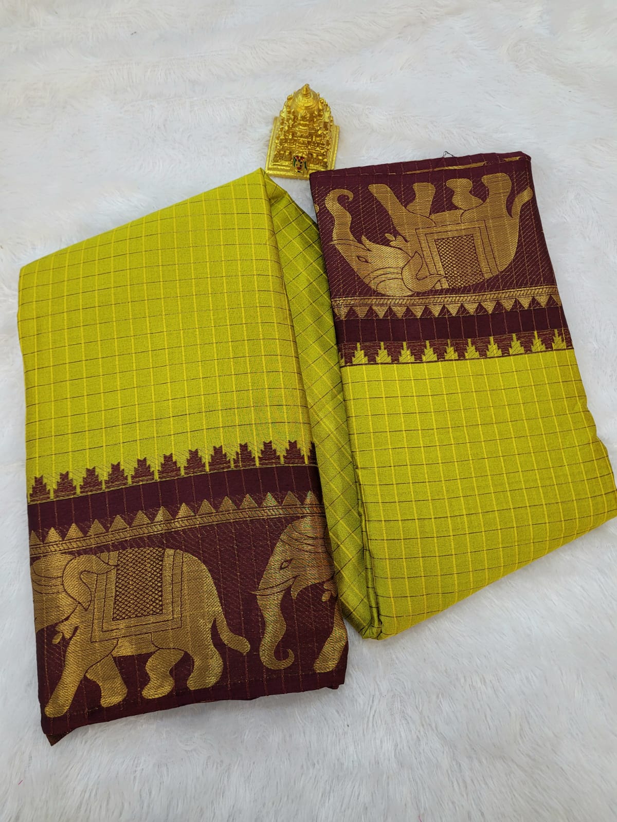 Pongal Gifting Sarees: Authentic mahwswari Checks silk Sarees