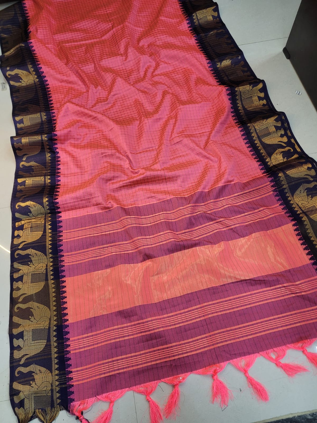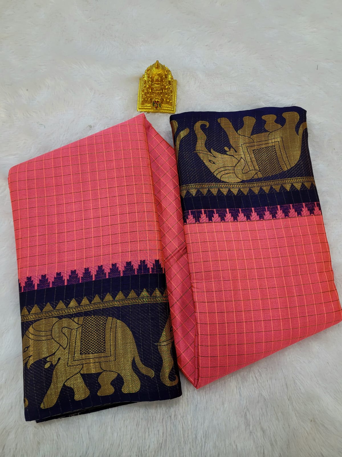 Pongal Gifting Sarees: Authentic mahwswari Checks silk Sarees