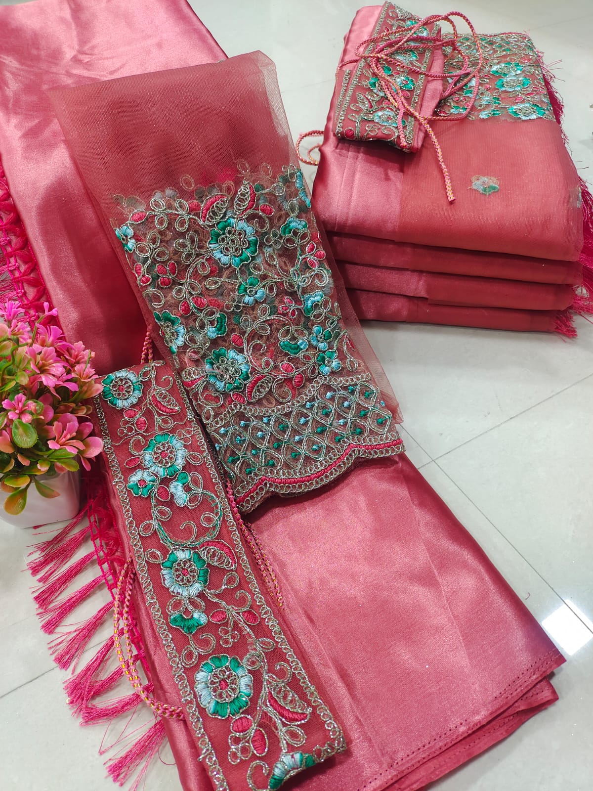 💐Premium Satin Saree with tassels