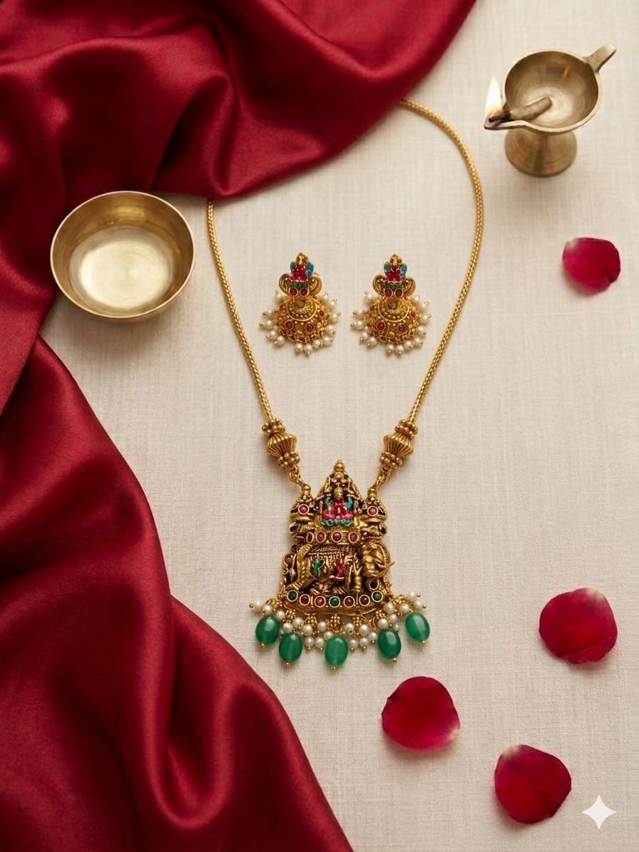 Discover the timeless charm of imitation temple jewellery, where tradition meets modern elegance. Inspired by the grandeur of heritage temple designs, each piece reflects intricate craftsmanship and cultural richness without compromising on affordability.