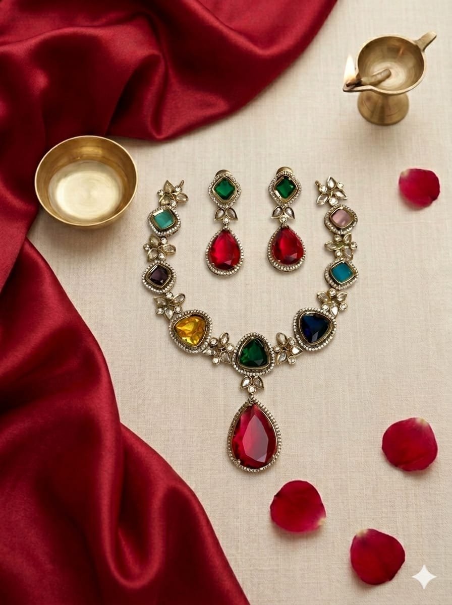 Elite Multicolor stoned party wear neckpiece & earring set
