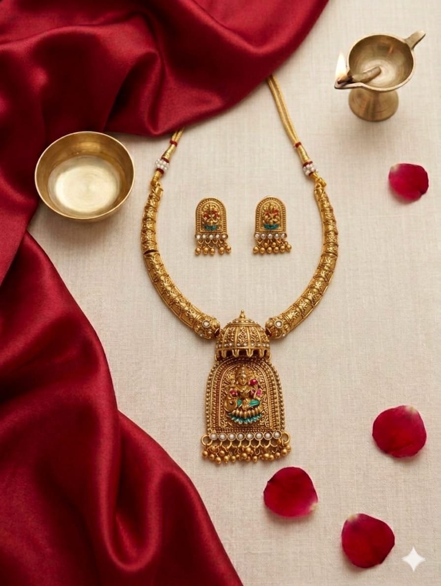 Discover the timeless charm of imitation temple jewellery, where tradition meets modern elegance. Inspired by the grandeur of heritage temple designs, each piece reflects intricate craftsmanship and cultural richness without compromising on affordability.