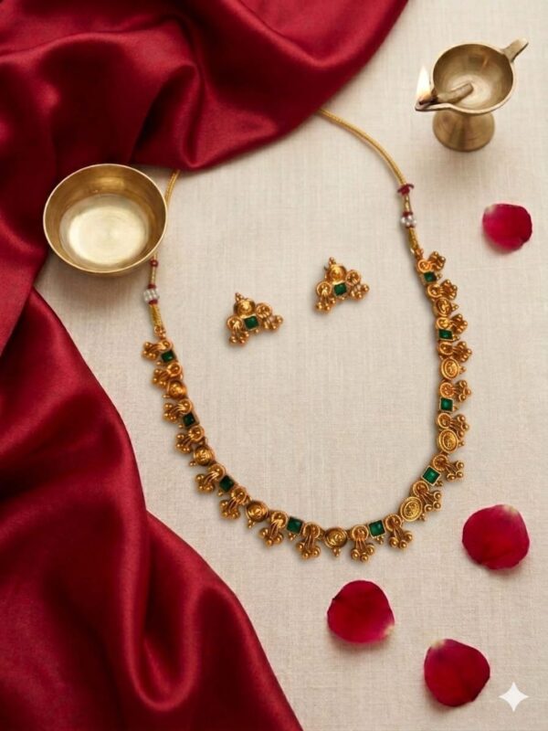 Discover the timeless charm of imitation temple jewellery, where tradition meets modern elegance. Inspired by the grandeur of heritage temple designs, each piece reflects intricate craftsmanship and cultural richness without compromising on affordability.