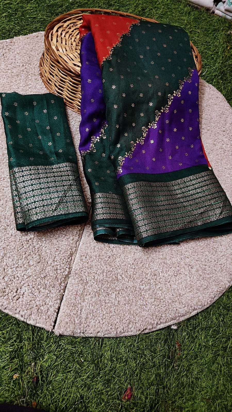 Blouse: A matching contrast blouse piece with a zari border is also included.